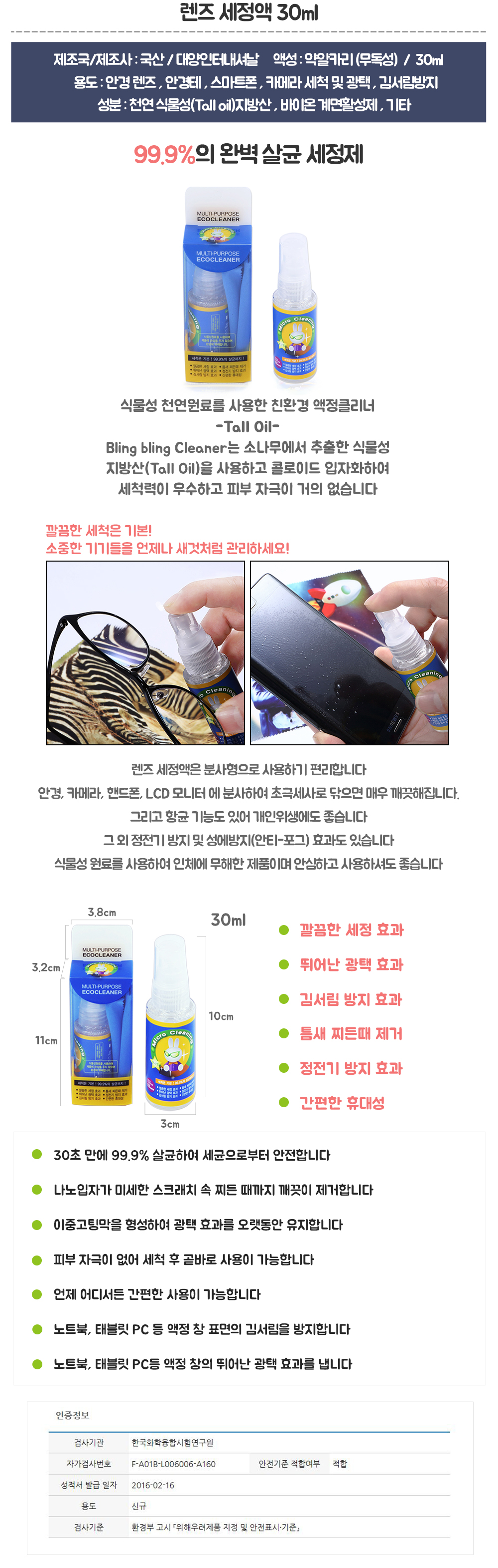 ÇÚµåÆù ¾×Á¤ ¼¼Á¤¾× (ºÐ»çÇü) 99% ¿Ïº® »ì±Õ ¾×Á¤ ¼¼Á¤¾× 30 ml