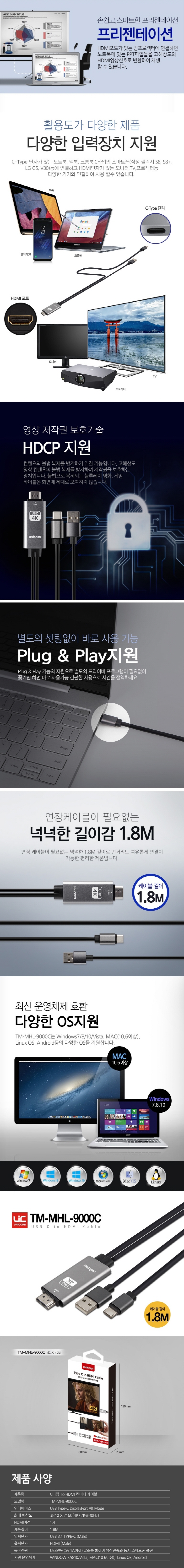 [À¯´ÏÄÜ] CŸÀÔ to HDMI ÄÁ¹öÅÍ ÄÉÀ̺í / TM-MHL-9000C