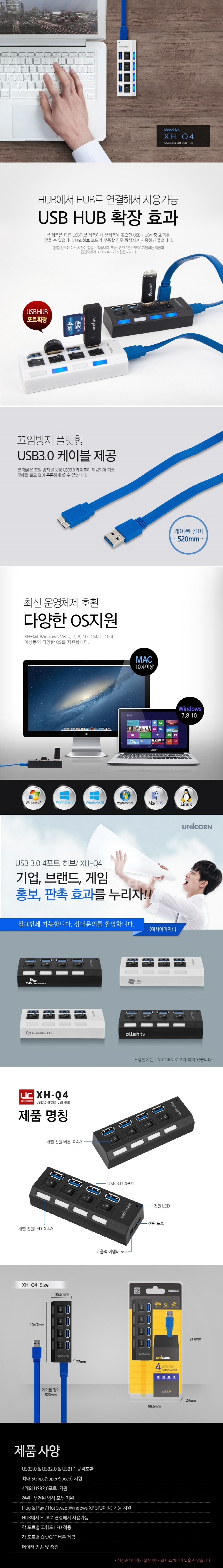 À¯´ÏÄÜ XH-Q4 °³º° ½ºÀ§Ä¡ 4Æ÷Æ® USB 3.0 Çãºê